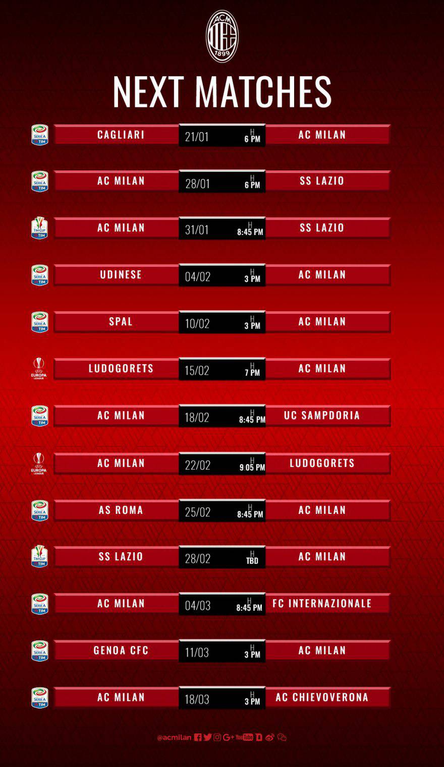 It will also be the. Serie a, il calendario del milan :.